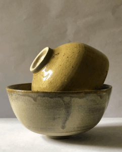 Dans un souci de simplicité et de respect des ressources, je fabrique moi-même mes émaux, souvent à partir de la cendre de ma cheminée. Les couleurs de chaque pièce dépendent alors des essences d’arbres brûlées. Je ne trie pas le bois, alors chaque fournée réserve ses surprises, ses nuances uniques.